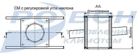 Компоновка стакана монтажного 13 - с обратным клапаном на приток, предназначена для установки крышного вентилятора на кровле с уклоном.Габаритные и присоединительные размеры стаканов монтажных СМ с регулировкой угла наклона кровли (мм)
